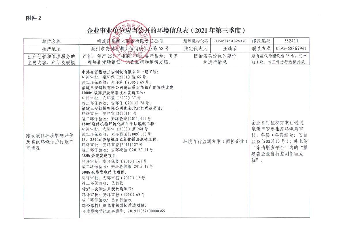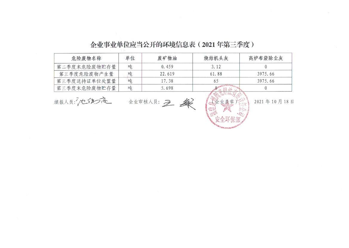企業(yè)事業(yè)單位應(yīng)當(dāng)公開的環(huán)境信息表(2021年度第三季度)
