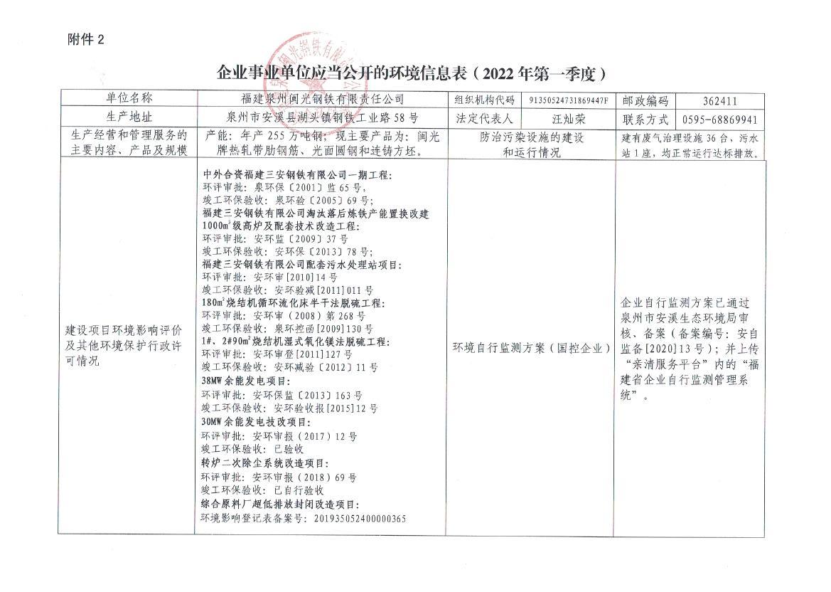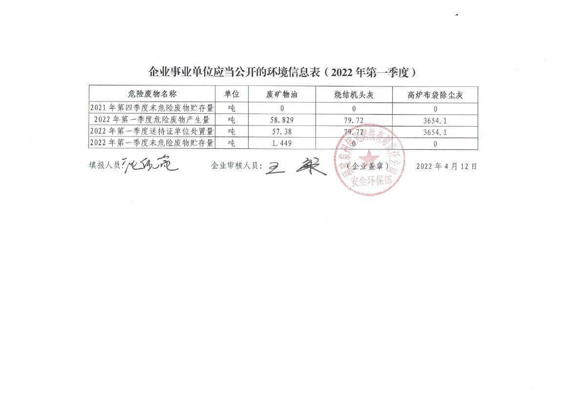 企業(yè)事業(yè)單位應當公開的環(huán)境信息表(2022年度第一季度)